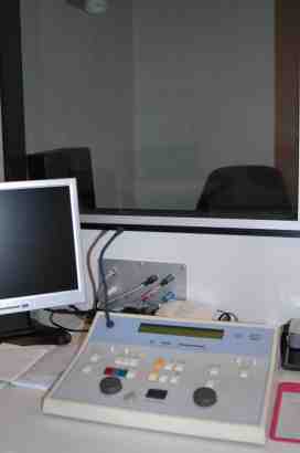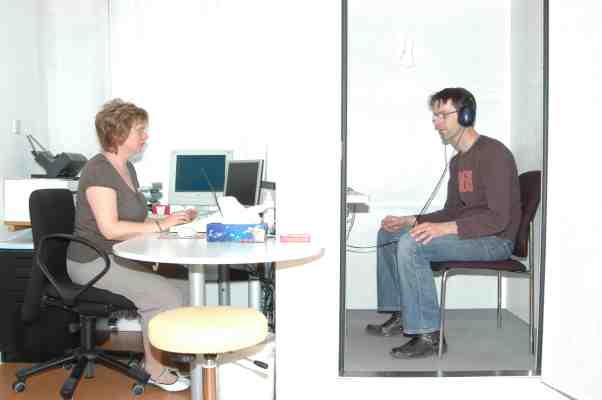 Die Hörtests werden in einem nach DIN-Norm schallisoliertem Raum durchgeführt, abgeschirmt von Umgebungsgeräuschen des Praxisalltags