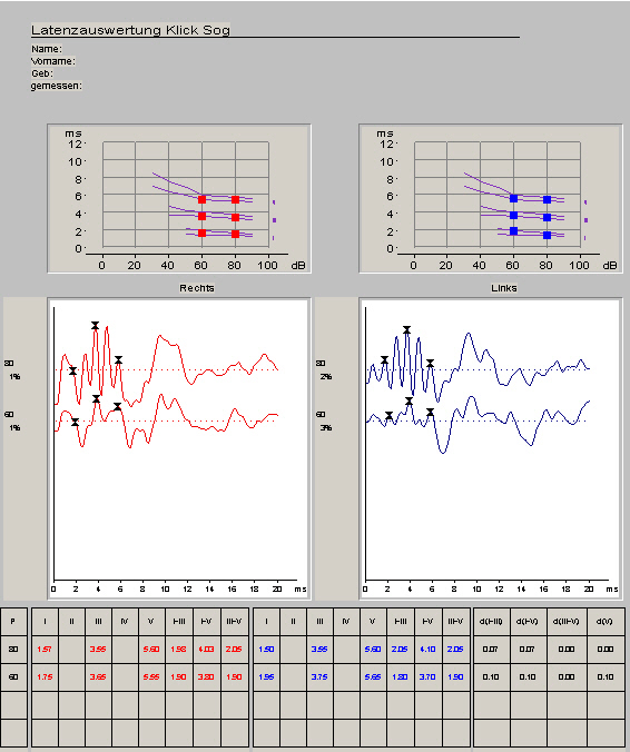 Die Ableitung der Otoakustischen Emissionen (TEOAE, transient evozierte otoakustische Emissionen) macht sich die Tatsache zunutze, daß das Ohr nicht nur Geräusche wahrnimmt, sondern auch selbst erzeugt! Dies kann man sogar provozieren und zur Beurteilung der Funktion der äußeren Haarzellen, den wichtigsten Sinneszellen des Innenohres, nutzen. Die Emissionen zeigen bei Neugeborenen z. B. die korrekte Funktion des Innenohres an, sind hier sogar sehr gut ableitbar und werden im hohen Alter zunehmend schlechter, was dann auf eine Altersschwerhörigkeit hindeutet. Auch toxische Einflüsse einer Chemotherapie oder Antibiose auf das Innenohr lassen sich hiermit früher nachweisen als mit einem normalem Hörtest.